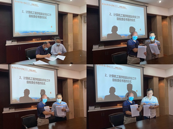 会上,进行了伟德bv国际体育就业创业工作目标责任书签约仪式,院长邓春晖与毕业班班导师、辅导员、就业创业专员签订了《广州城市理工学院伟德bv国际体育/大数据学院2021年毕业生就业创业工作目标责任书》。