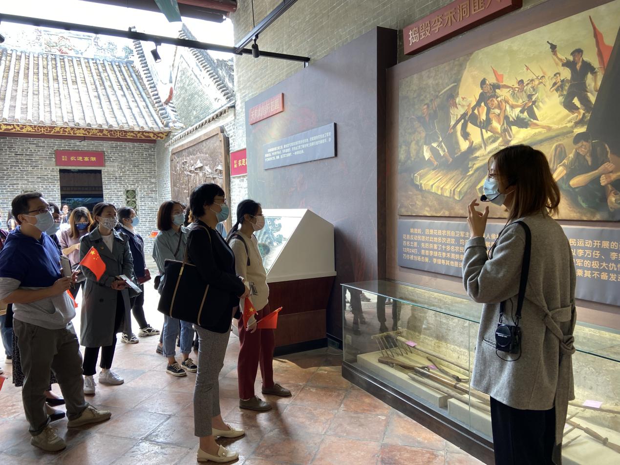 为深入开展党史学习教育,传承红色革命文化精神,学习贯彻党的十九届六中全会精神,激励广大党员坚定理想信念,更好地发挥党员的先锋模范作用,11月19、20日下午,伟德bv国际体育党总支组织全体教师党员、学生党员代表分批前往中国工农红军第四师成立大会旧址展馆和花县农民运动陈列馆开展“追寻红色足迹,传承红色基因”主题党日活动。