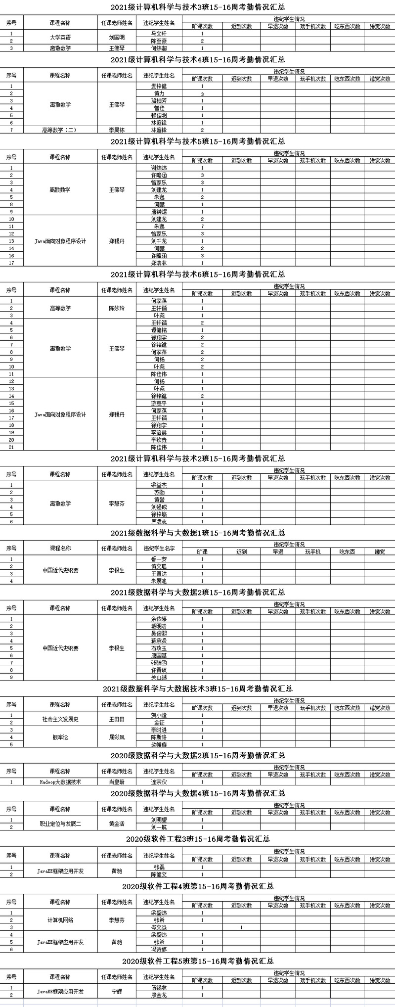 伟德bv国际体育/大数据学院2021-2022学年度第二学期15-16周考勤情况通报