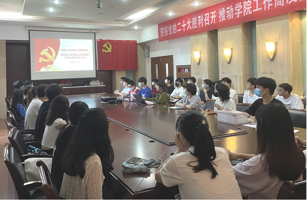 随后,2019级软件工程3班的林涛和软件工程6班的黄骏文作为学生党员代表先后从个人入党历程、参与《品读经典,传承红色精神》读书会的收获和感受、对新发展党员的期望三个方面进行交流分享,勉励新党员要不断增强入党的光荣感和责任感,坚定对党的信念,把为人民服务的宗旨牢记心中,以身作则,率先垂范,坚持理论联系实际,真正把学习成果转化为干好工作的实际能力。