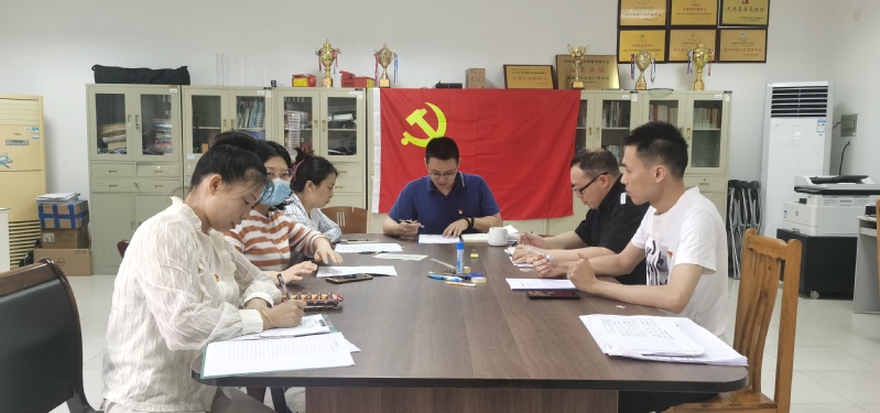 首先,由支部书记林煜东作会前学习情况的通报。为了认真学习习近平总书记重要精神,教工二支部全体成员在2022年3月15日召开了会前学习会,深入学习习近平总书记在庆祝中国共产党成立100周年大会上的讲话精神、党的十九届六中全会精神以及《中国共产党党章》和《中国共产党组织工作条例》等文件和辅导材料。其中,对《党章》和《条例》的学习,采用了问题导向的方式,设立若干与工作生活有关的问题下派给每位党员,要求根据《党章》和《条例》查找出答案并与其它党员分享,这种方式既可以激发党员们学习的主动性,又可以将《党章》和《条例》的思想融入实践,加深认识。最后,书记林煜东、副书记文玮婧采取主动发问方式,引导成员讨论开展谈心谈话,加深支部成员之间的联系,为开好组织生活会和民主评议党员活动打下坚实基础。