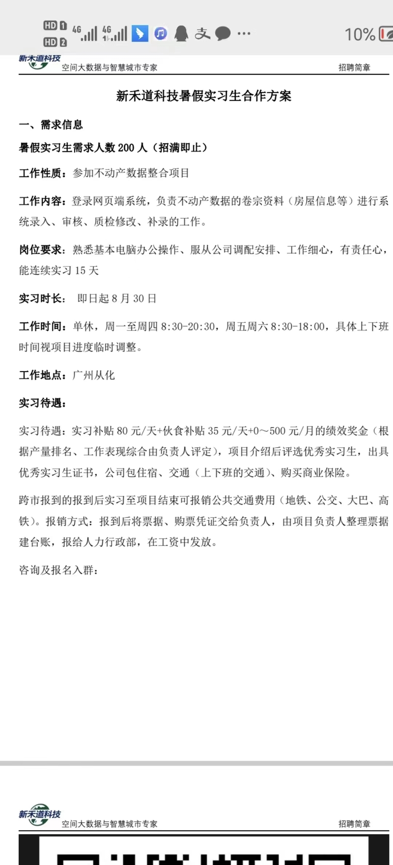 正规单位实习,政府项目。有意向的入群,填意向表,预计4号或5号开始。