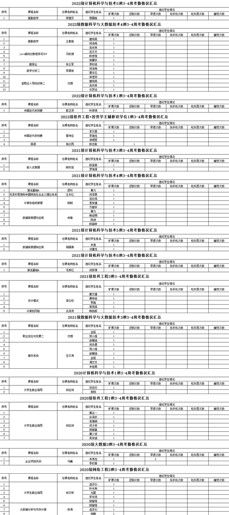 伟德bv国际体育/大数据学院2022-2023学年度第二学期3-4周考勤情况通报