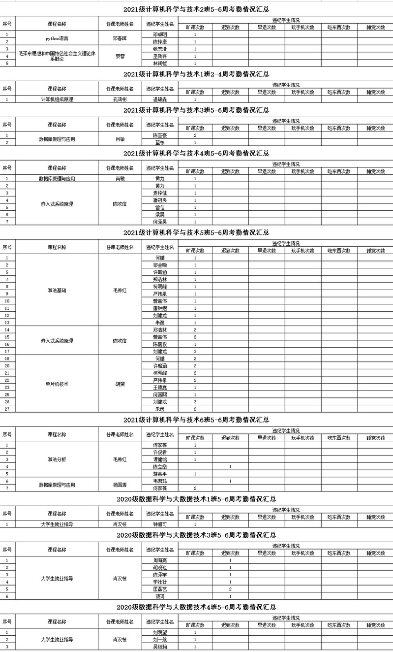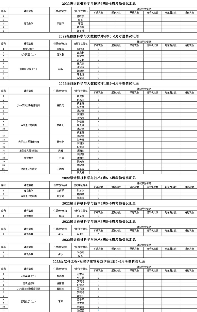 伟德bv国际体育/大数据学院2022-2023学年度第二学期5-6周考勤情况通报