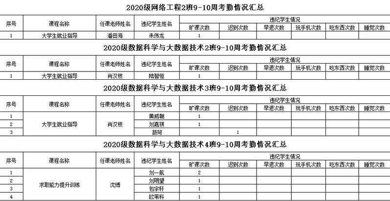 伟德bv国际体育/大数据学院2022-2023学年度第二学期9-10周学生考勤情况通报