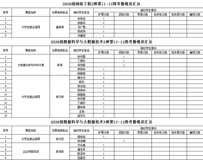 伟德bv国际体育/大数据学院2022-2023学年度第二学期11-12周学生考勤情况通报