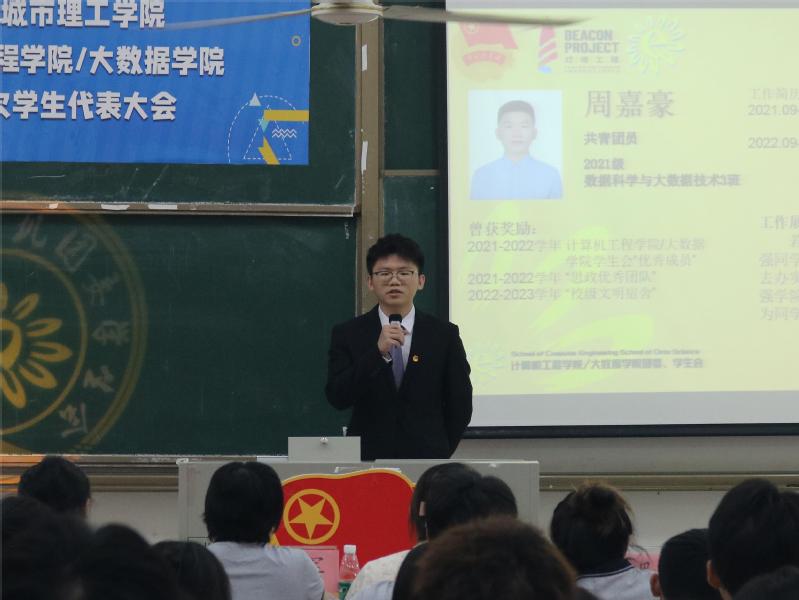 随后,黄圣钊同学作《广州城市理工学院伟德bv国际体育/大数据学院学生会2022-2023年工作报告》对过去一年的学生会工作进行总结。