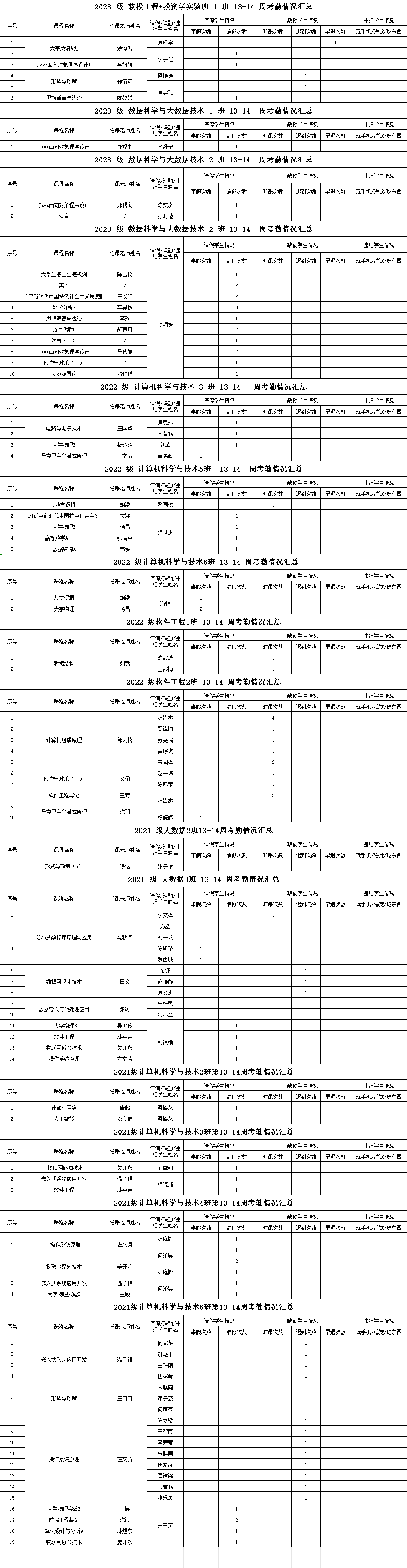 伟德bv国际体育/大数据学院2023-2024学年第一学期13-14周学生考勤情况通报