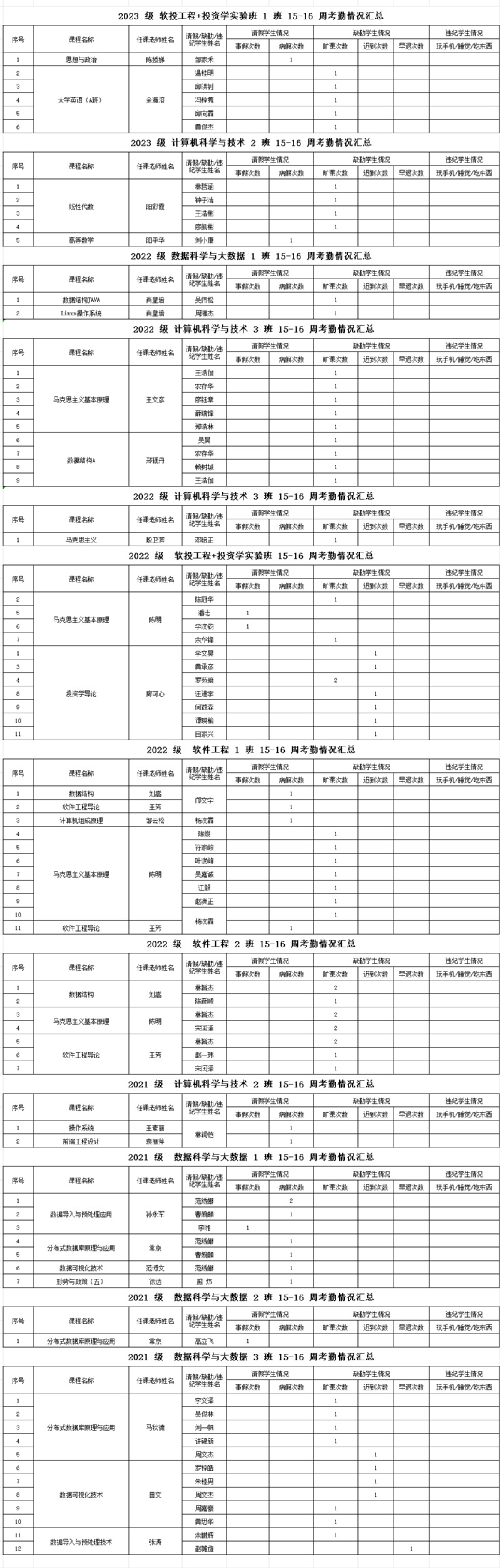 伟德bv国际体育/大数据学院2023-2024学年第一学期15-16周学生考勤情况通报
