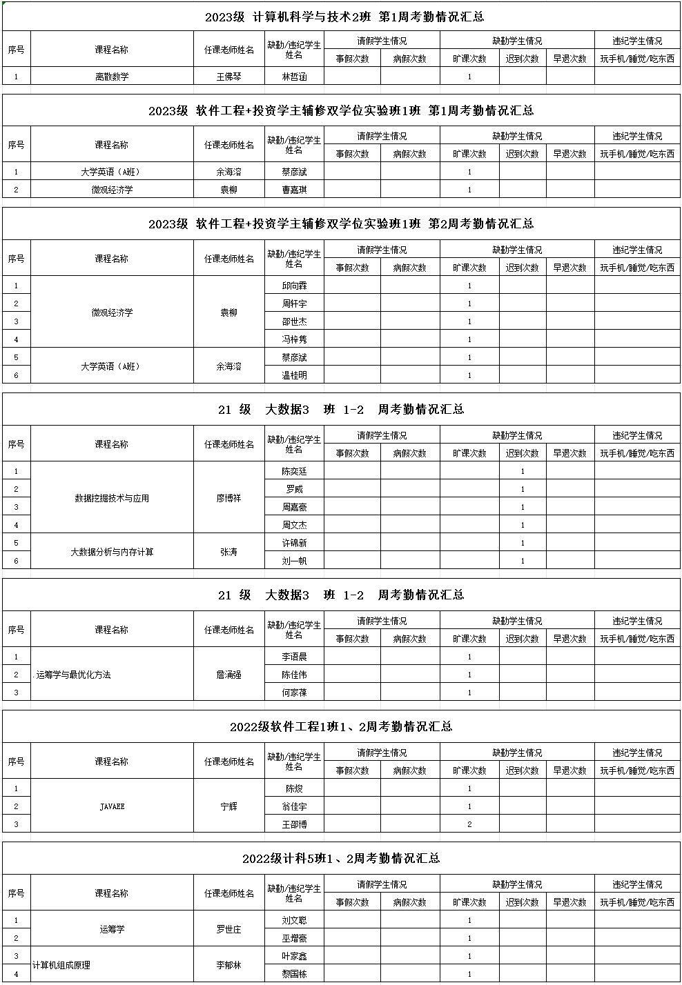 伟德bv国际体育/大数据学院2023-2024学年第二学期学生考勤情况通报