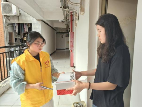 志愿者前往新华街社区进行电话访问和上门慰问(学院团委志愿实践部门 提供)