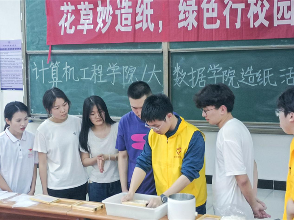 为进一步宣传环保知识,倡导绿色环保理念,推进校园生态文明建设,3月24日上午,学院团委志愿实践部门开展“花草妙造纸,绿色行校园”志愿实践活动,让同学们在亲身体验造纸的过程中了解传统造纸的环保知识,培养在校大学生的节约意识,树立资源回收再利用的观念。