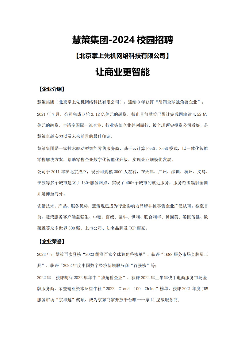 招聘信息 | 【全球独角兽企业】慧策集团-2024年校园招聘简章