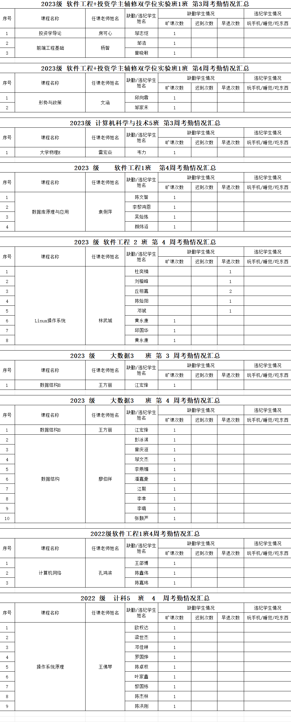 伟德bv国际体育/大数据学院2024-2025学年度第一学期3-4周学生考勤情况通报