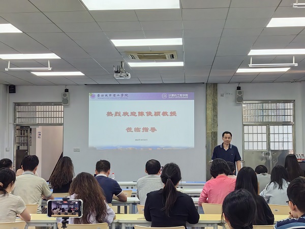 本网讯(记者 宋禹亭) 10月22日下午,学院举行了首期学术研讨沙龙。本次活动邀请华南理工大学软件学院陈俊颖教授作为主讲嘉宾,就人工智能、深度学习及图像处理等技术展开专题讲座。学院院长奚建清、全体教师以及竞赛团队学生参加讲座。