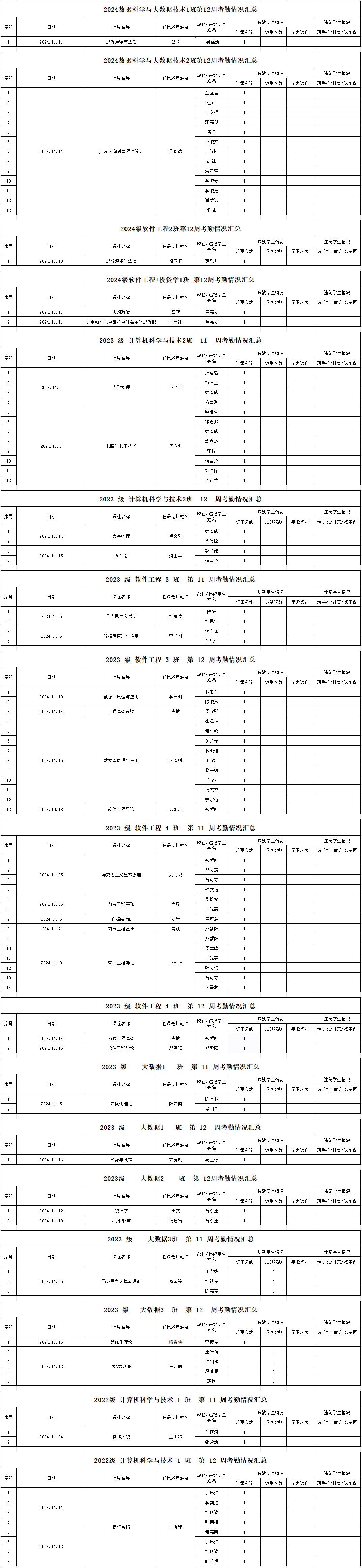 伟德bv国际体育/大数据学院2024-2025学年度第一学期第11-12周学生考勤情况通报