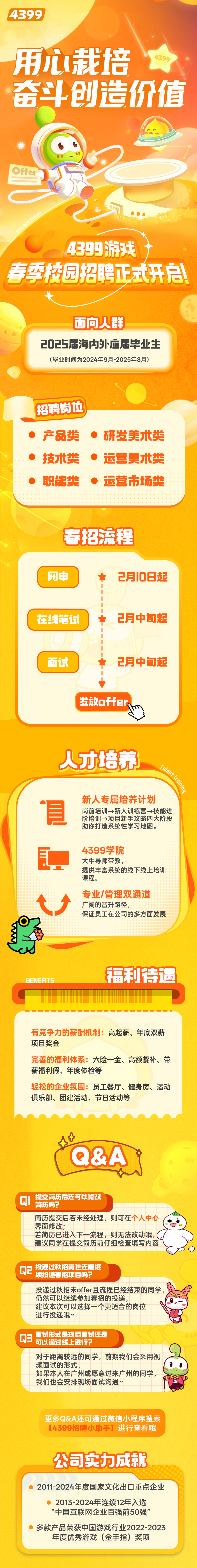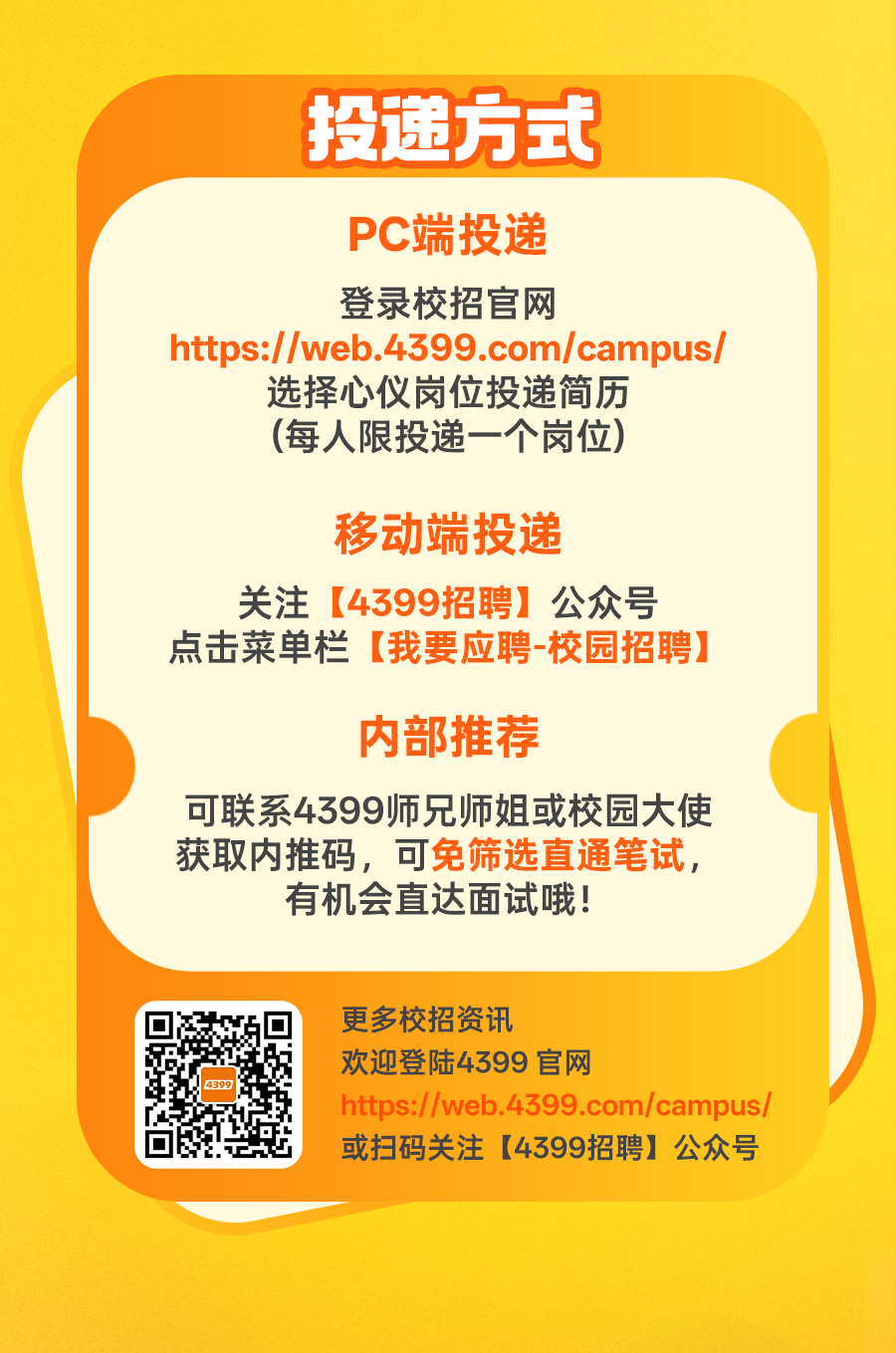 招聘信息 | 4399游戏2025届春季校园招聘正式开启!