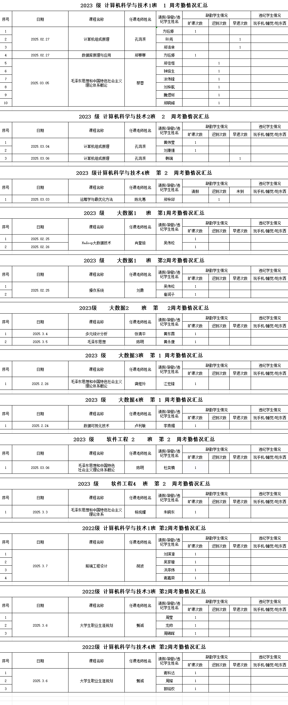 伟德bv国际体育/大数据学院2024-2025学年度第二学期第1-2周学生考勤情况通报