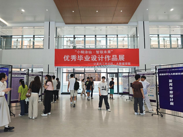 本次优秀毕业设计作品展现场设置计算机科学与技术、数据科学与大数据技术、软件工程三个专业系列共35个作品,并全程配备茶歇。毕业设计作品不仅是学院学子求学之路的成长回顾与精彩总结,也是他们踏上人生新征程的闪亮起点。观展过程中,现场师生在各个展架前,感受到作者们的专业实践能力、创新思维和对未来趋势的独到见解。