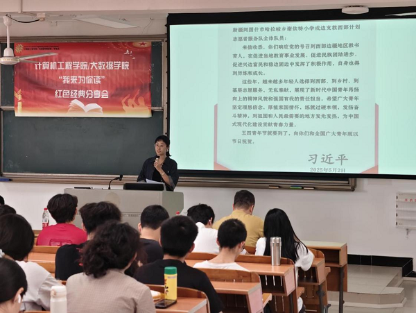 本网讯(记者 彭湘雨 陈杨柳)为弘扬红色文化,赓续精神血脉,强化青年思想引领,5月13日下午,学院在A5-401开展“我来为你读”红色经典分享会。学院党总支副书记、学生工作办公室负责人、学院团委副书记及青马班成员参会。