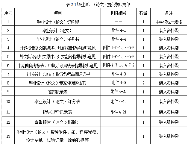 学生准备好毕业设计相关材料,前往商业街创毅快印图文店找到自己的毕业设计封面进行胶装(要求论文不能装订,用文件夹夹住即可)。胶装前请务必确认纸质版材料为导师审核确认过无问题的最终稿(含毕业设计内页全部签名及日期已按要求)。将文件装入资料袋后交至毕业设计导师处。毕业设计提交清单如图:
