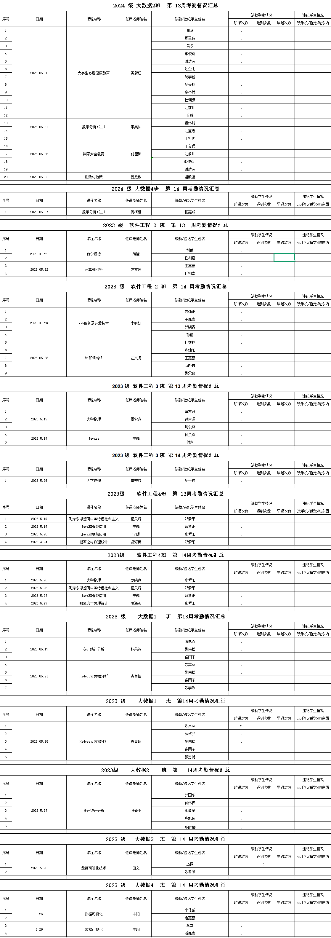 伟德bv国际体育/大数据学院2024-2025学年度第二学期第13-14周学生考勤情况通报