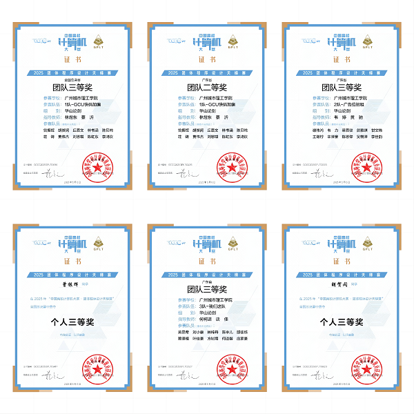 本网讯(记者 陈雪松) 5月19日,伟德bv国际体育收到2025 年“中国高校计算机大赛——团体程序设计天梯赛”证书,来自伟德bv国际体育/大数据学院的三支代表队在此次竞赛中表现出色,取得了 “华山论剑” 组全国团体三等奖 1 项、广东省团体二等奖 1 项、广东省团体三等奖 2 项的优异成绩,与此同时,曾振辉、胡贺闵两位同学凭借出色发挥,分别荣获全国个人三等奖,展现了伟德bv国际体育学生在程序设计领域的扎实功底和卓越实力,再续伟德bv国际体育在该项赛事中的辉煌。