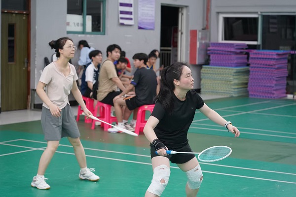 比赛在热烈的氛围中拉开序幕,分为教师团队以及学生团队进行较量。赛场上,选手们身手矫健,挥拍有力,展现了精湛的球技和顽强的拼搏精神。学生团队在比赛时凭借充沛的体力灵活移动,扣杀凌厉;教师团队在比赛时凭借扎实的基本功稳扎稳打,攻守兼备。搭档之间默契配合,精彩的对决引得现场气氛高涨。