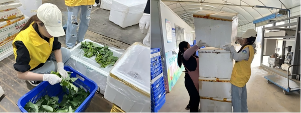 实践团成员参与冷链分拣工作(陶雨瑶 摄)