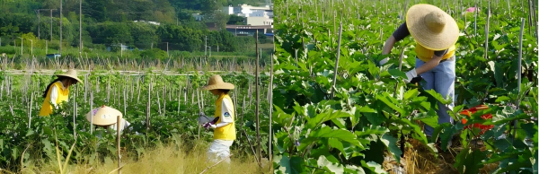 7月9日,实践团走进耘曦生态种植基地,在当地农民的指导下,成员们学习了茄子的采摘技巧,掌握了通过果实的颜色、形状、粗细和软硬程度来判断成熟度,深入了解农业生产中“看得准、动得快”的劳动经验。实践团在劳动过程中不仅切实体会到传统农业劳动的强度与辛苦,也发现了当前农业作业中存在的诸多人力瓶颈和效率短板。
