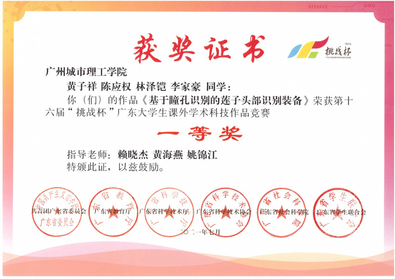 图10 2021年广东大学生课外学术科技作品竞赛一等奖
